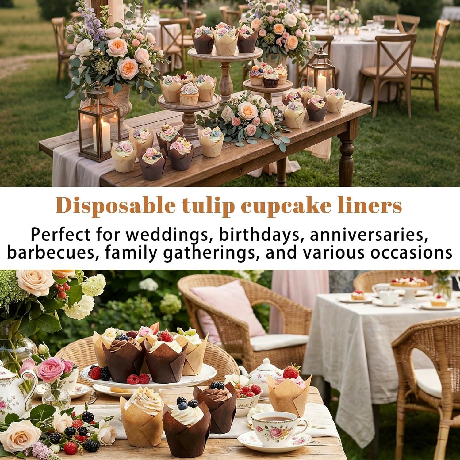 Elegant Tulip Design: Featuring a tulip flower design the tulip cupcake liners add elegance to dessert tables for weddings birthdays parties and festivities making cupcakes or muffins look more delicious and attractive