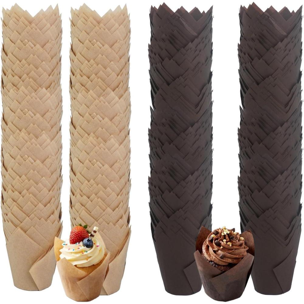 Premium Material: Our muffin liners are made of greaseproof paper that helps retain moisture and promotes even baking and tulip cupcake liners will not deform or break easily and can be separated from cakes and muffins microwave safe withstanding temperatures up to 220 degrees Celsius/425 degrees Fahrenheit