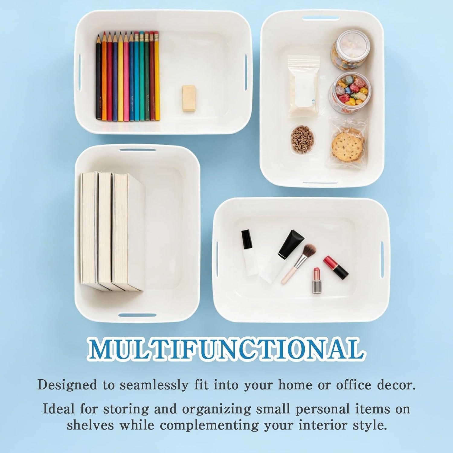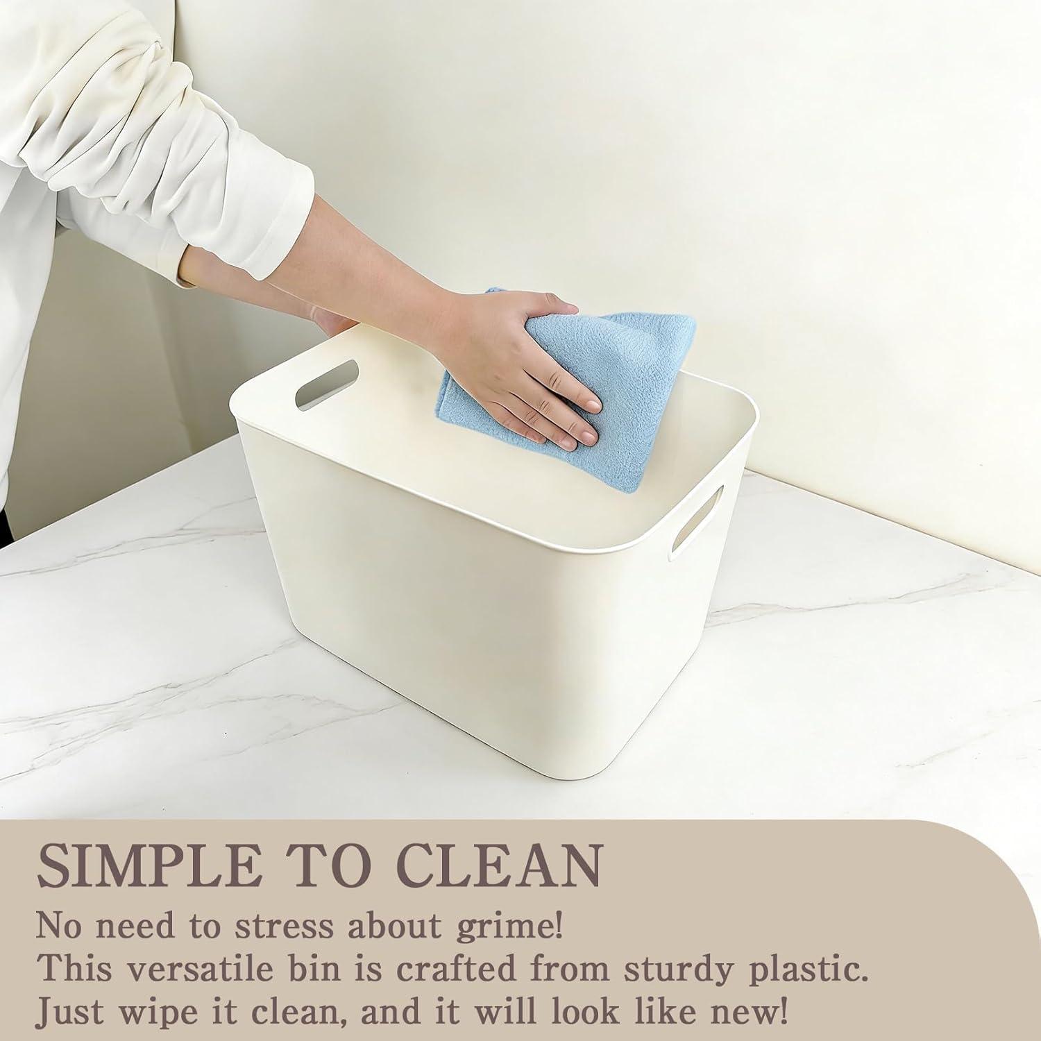 Wide Uses: With a proper capacity and handy design, you can use our white plastic storage bins to store many items, such as fruits, vegetables, packaged goods, yogurt, canned food, beverage boxes, and so on, to keep them well organized, with white plastic storage bins