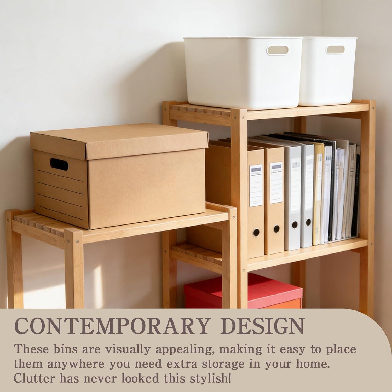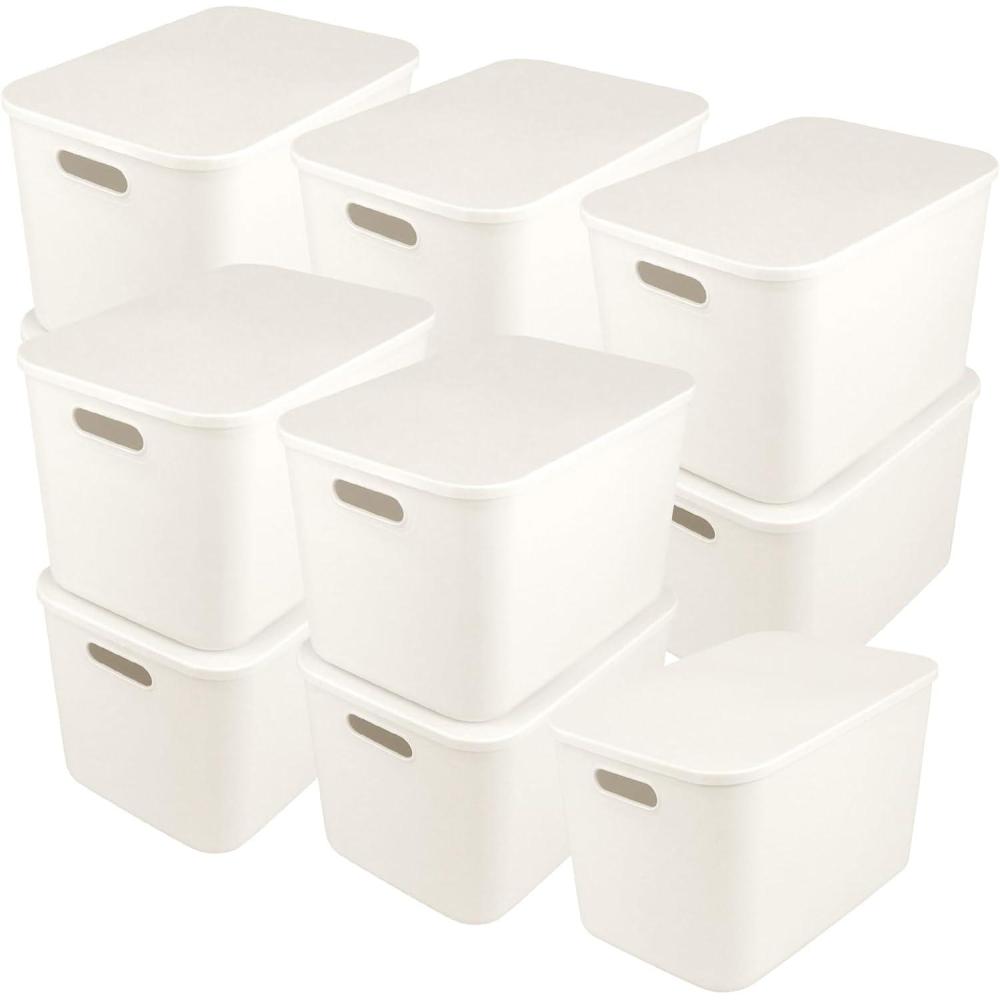 Modern Look: The crisp white base pairs effortlessly with lid, and are easy on the eyes; 11 packs white plastic storage bins are nice for use in the living area, bedroom, home, office, classroom, garage, or even in a cabinet or closet, as white plastic storage bins