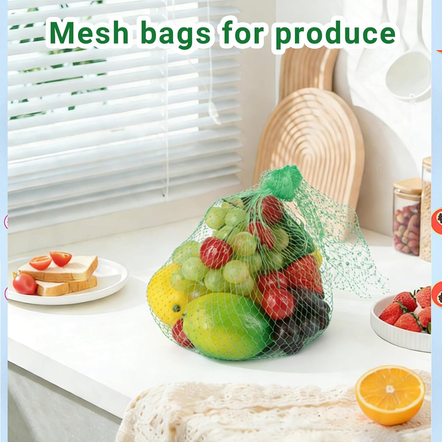 Size Details Overview: The produce mesh bags net are about 20 inch in length and can be stretched 8-14 inches in width, the large capacity of mesh bags allows you to put many items simultaneously