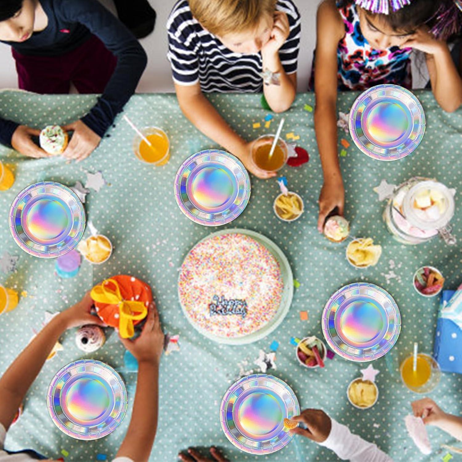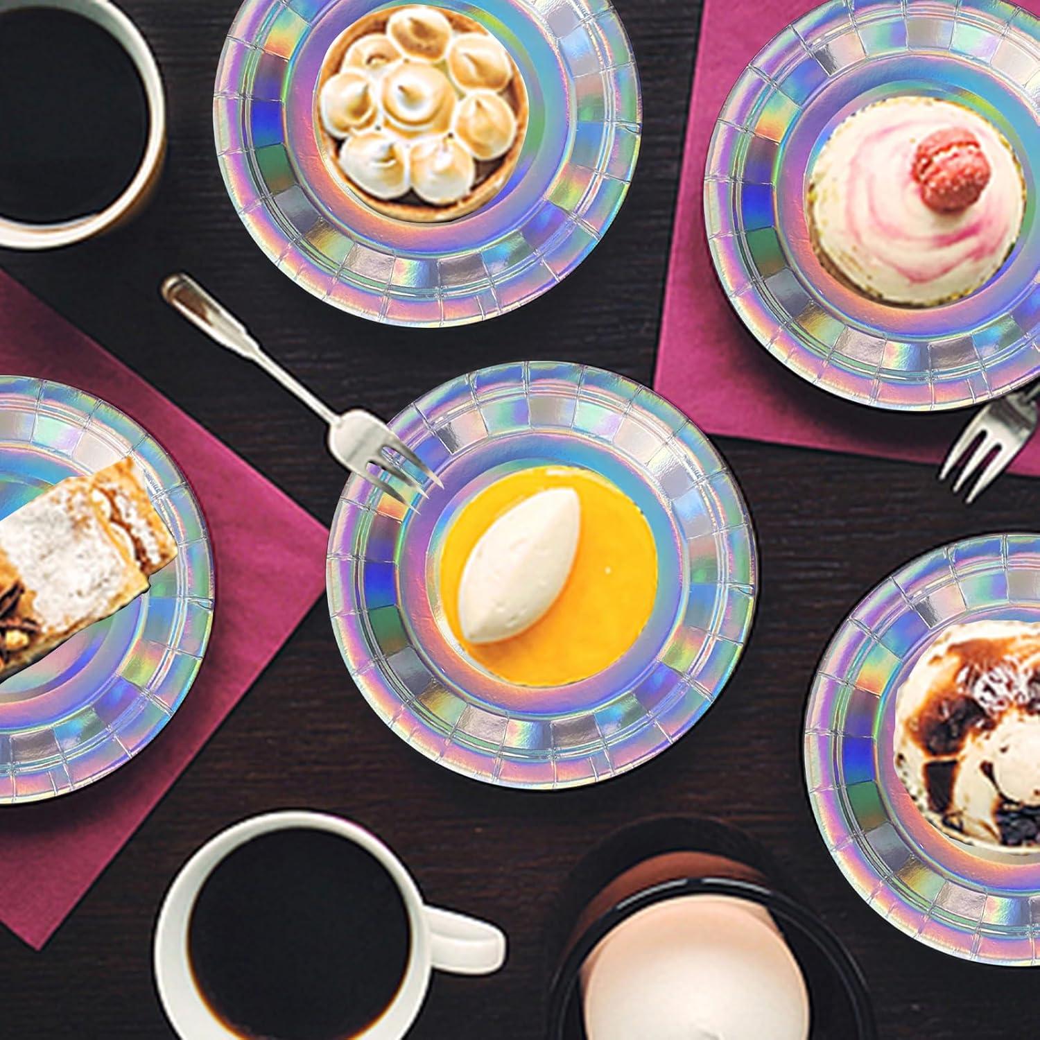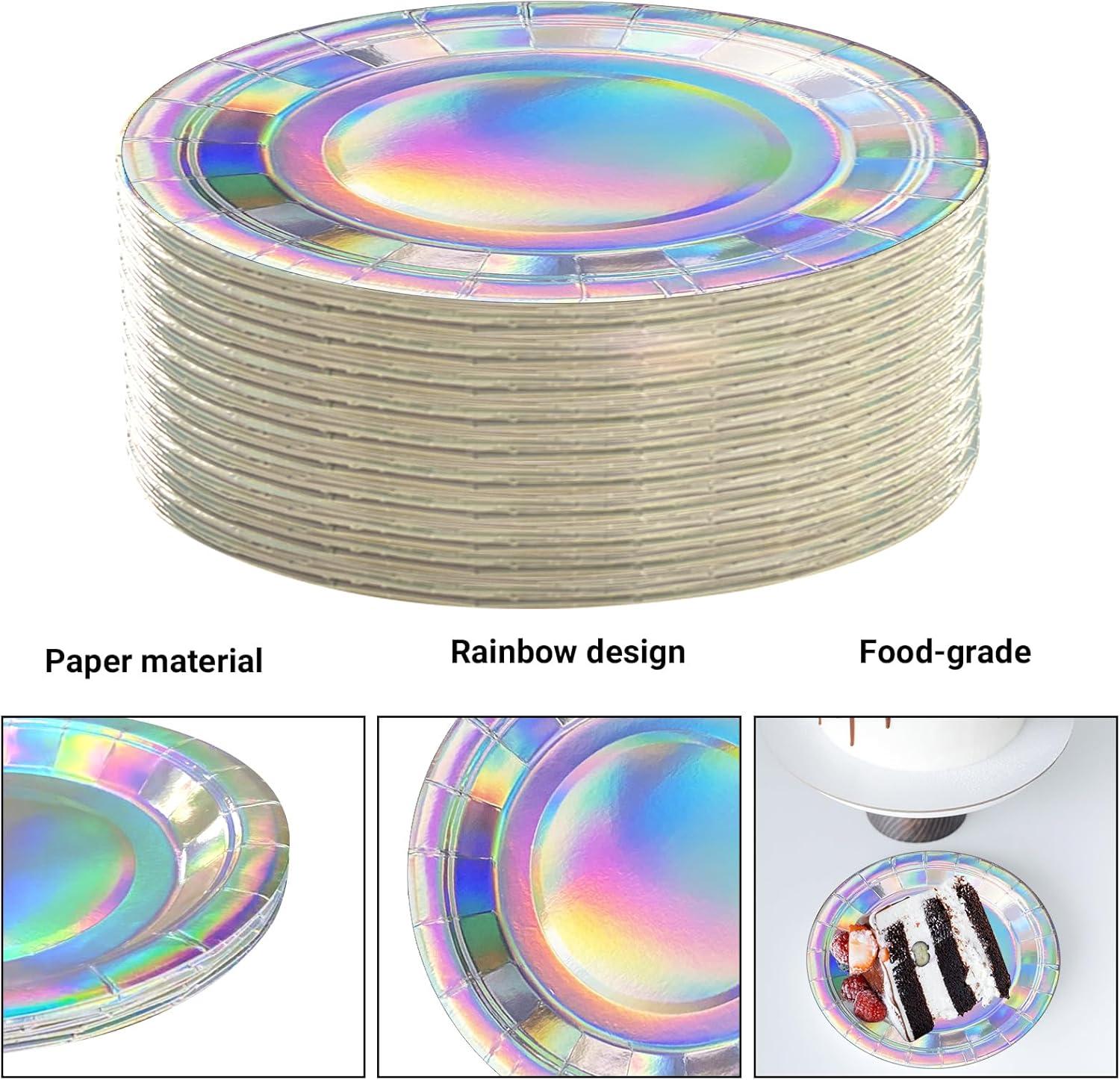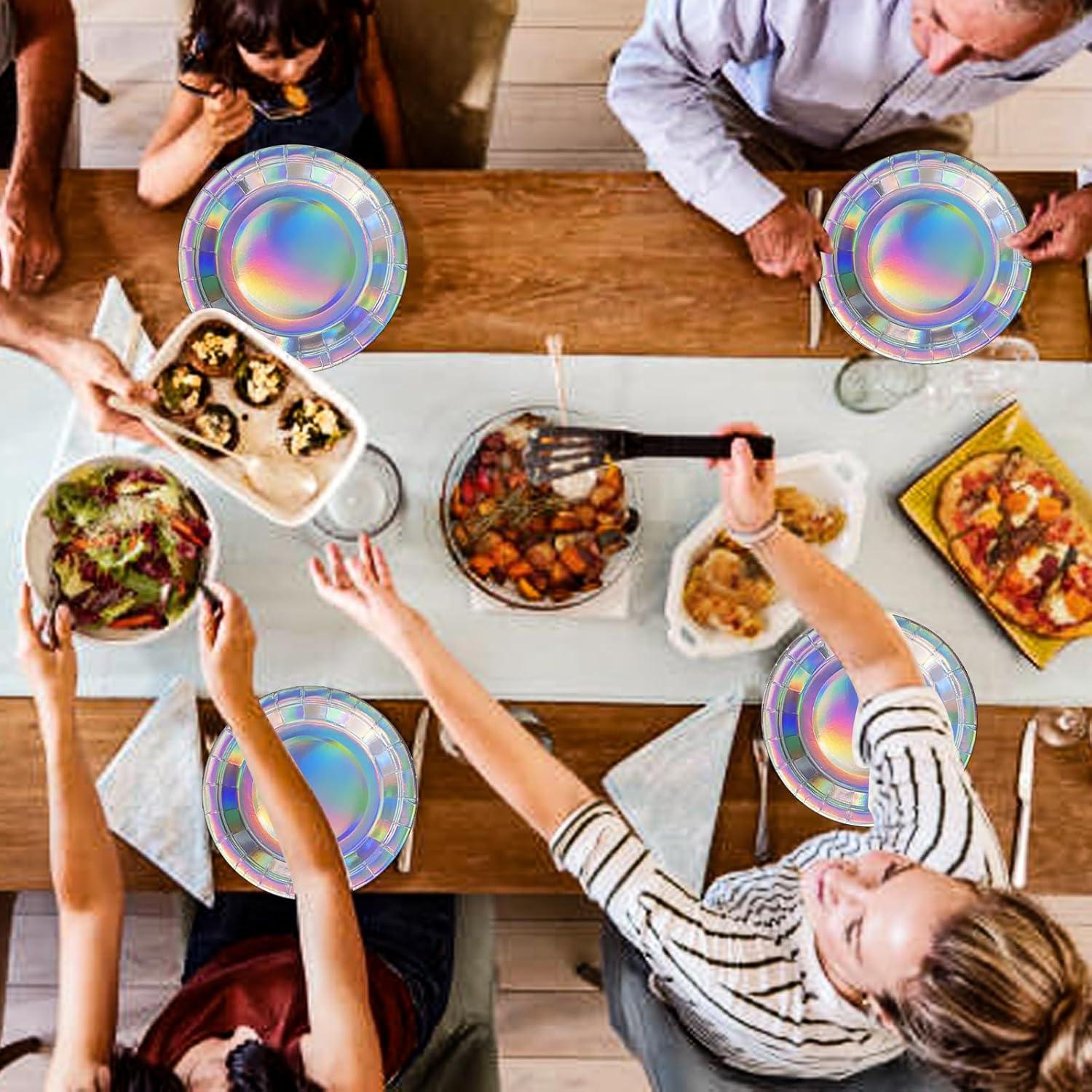 WIDE APPLICATIONS – These holographic party plates for weddings are applicable for many different occasions not only as plates, but also as decorations, such as baby shower, birthday, wedding, rainbow theme party, celebration, family gathering, graduation and more, lovely and charming.