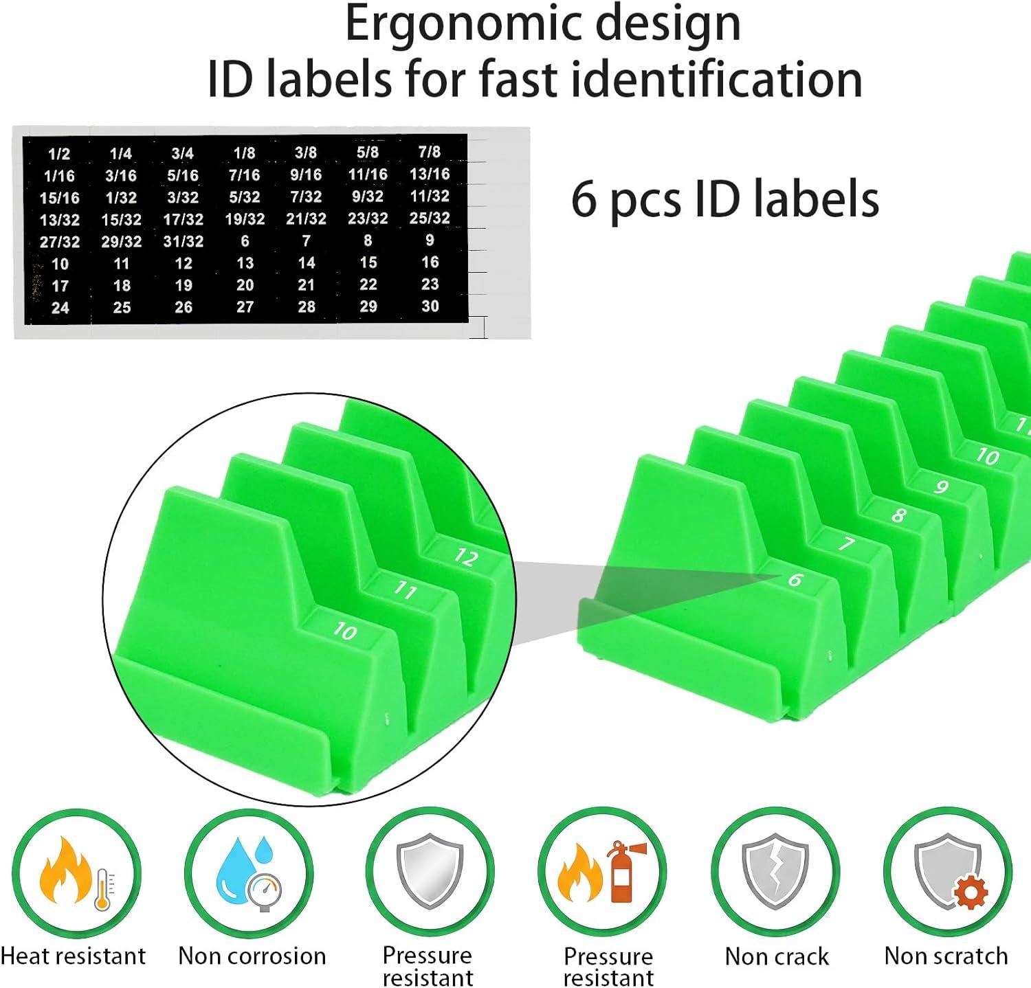 Clear Label Design: The wrench organizer for tool box features clear metric and SAE identification labels for quick access; This modular wrench organizer holder solution saves drawer space and improves workflow efficiency during tool organization