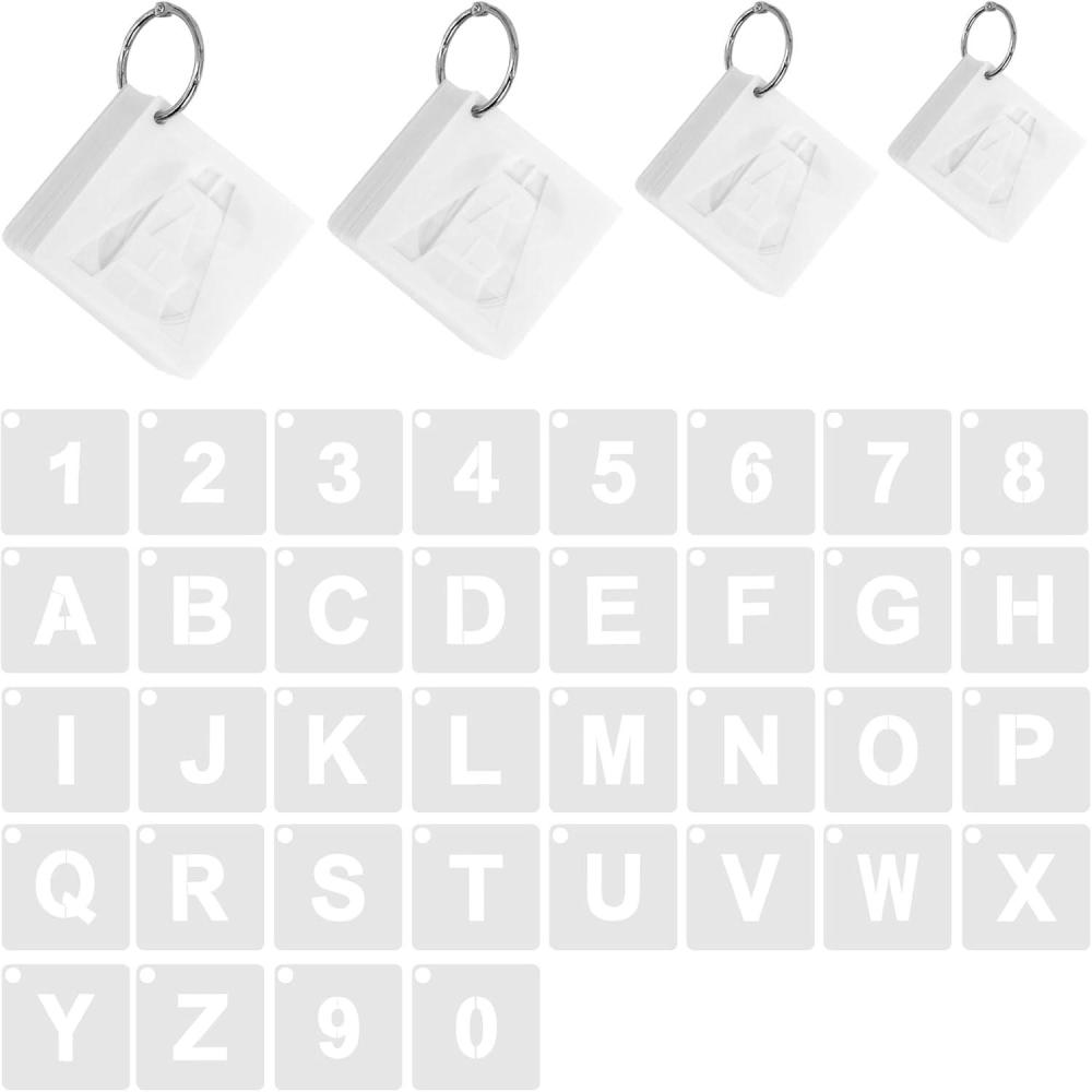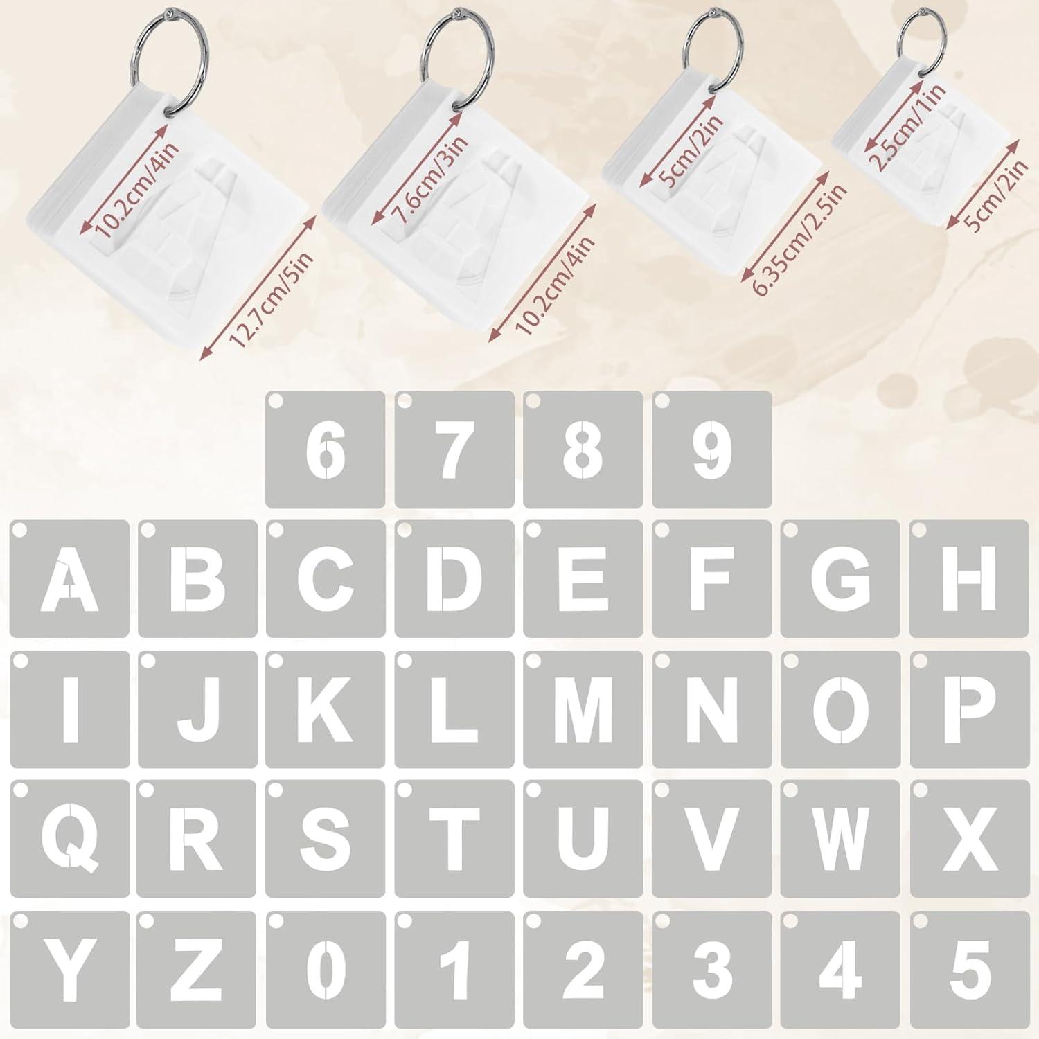 Multiple Sizes for Options: Includes 4 sets of letter and number stencils in different sizes 1 inch, 2 inch, 3 inch, 4 inch, each set equipped with 1 binder ring and 43 stencils featuring letters and numbers, making this letter and number stencils ideal for supporting a variety of creative and DIY needs