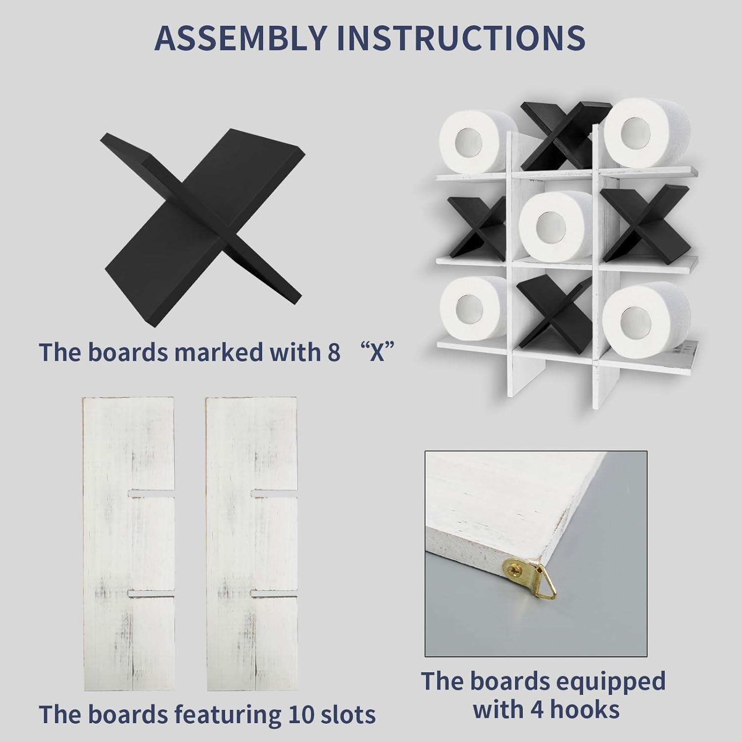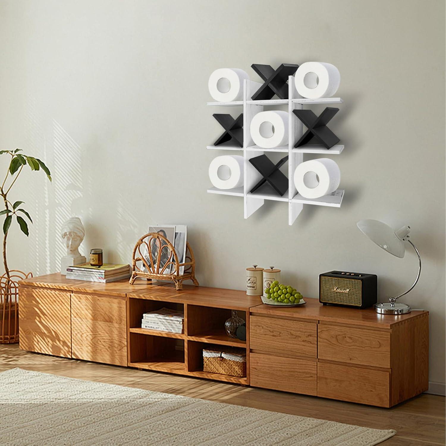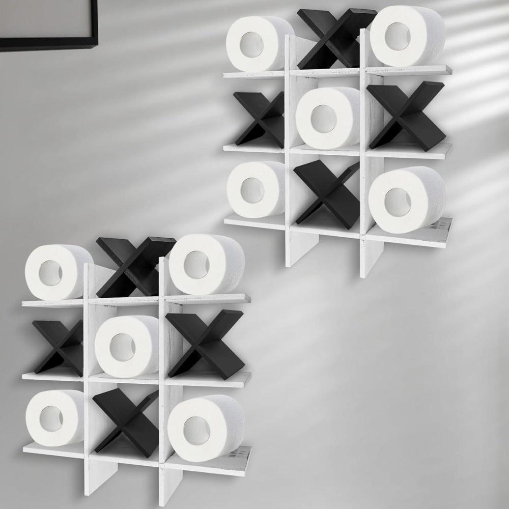 2-Piece Pack with Ideal Size: You will receive 2 pieces of toe toilet paper holder, each measuring about 15.8 x 15.8 inches and including 4 black “X” boards and 5 others; a practical storage solution and decoration for any wall