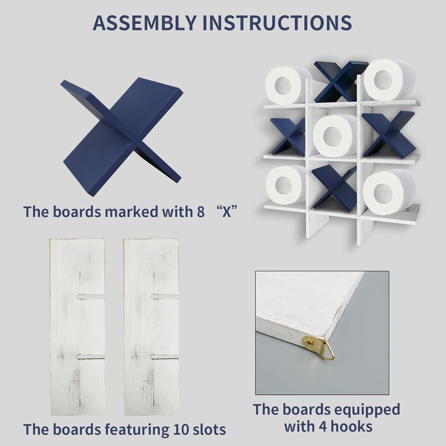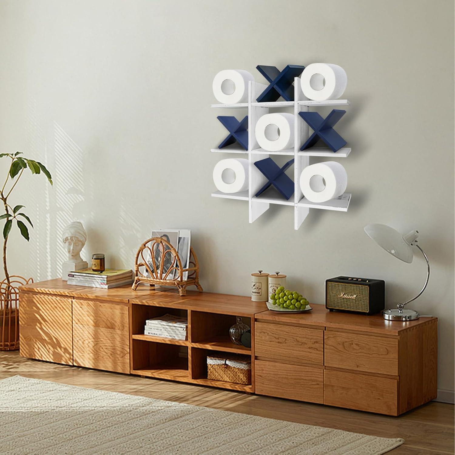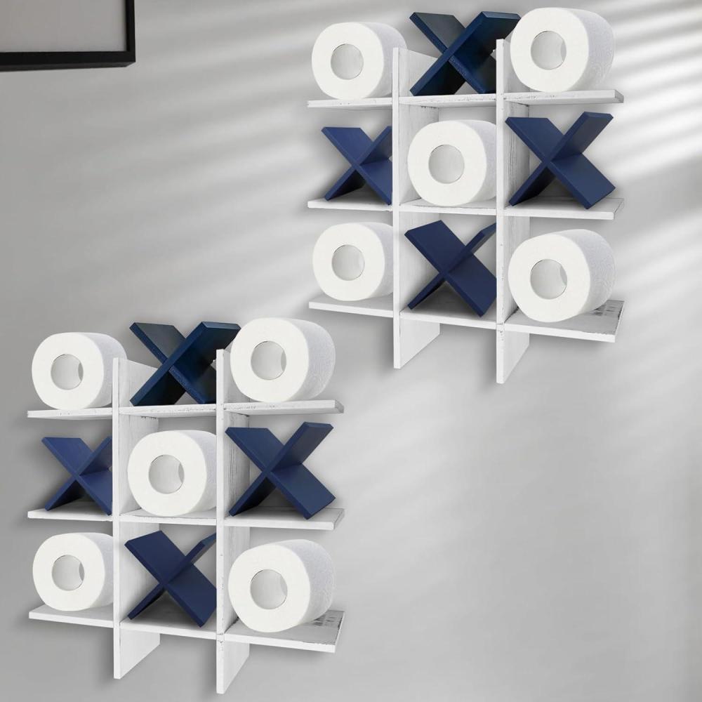 2-Piece Pack with Ideal Size: You will receive 2 pieces of toe toilet paper holder, each measuring about 15.8 x 15.8 inches and including 4 blue“X” boards and 5 others; a practical storage solution and decoration for any wall
