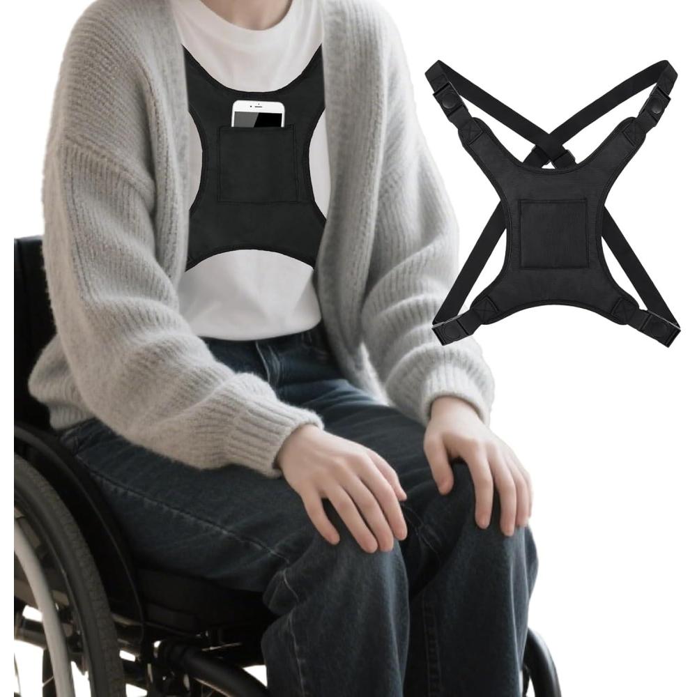 Convenient Pocket Design: The 4.5 x 4.5 inch storage bag is designed on the front of our wheelchair seat belt for easy storage of mobile phones, headphones, tissues, bank cards, ID cards, and other small items, keeping your everyday items at your fingertips while using the wheelchair seat belt