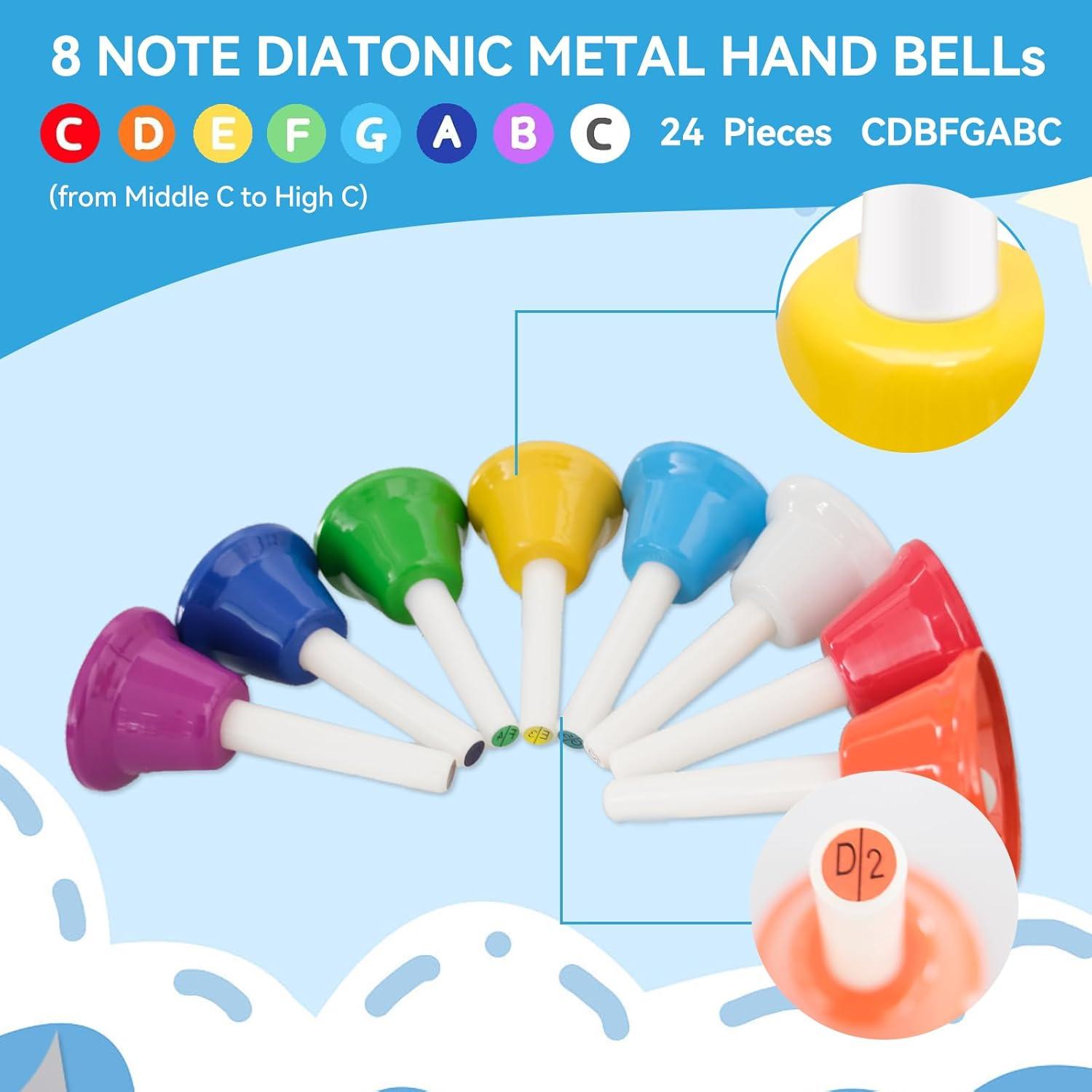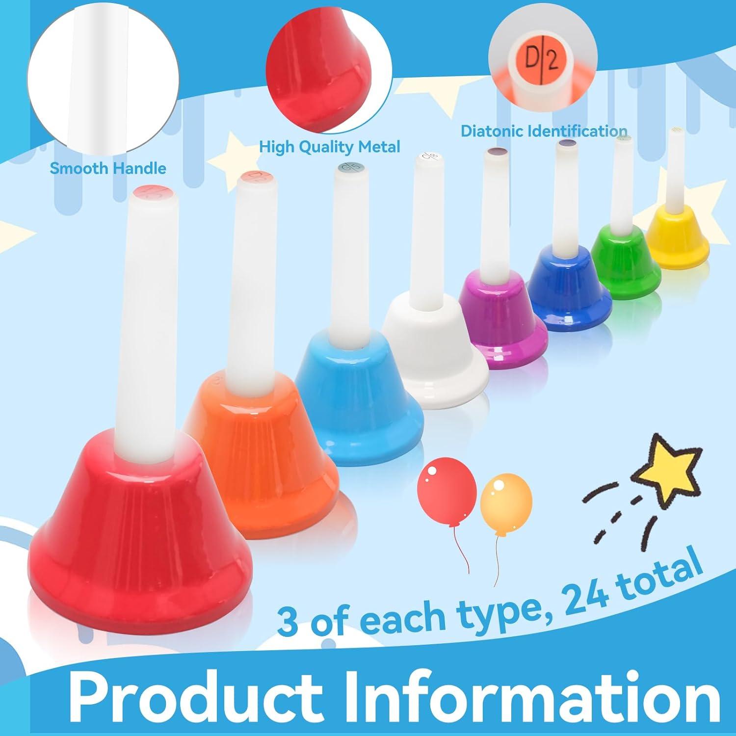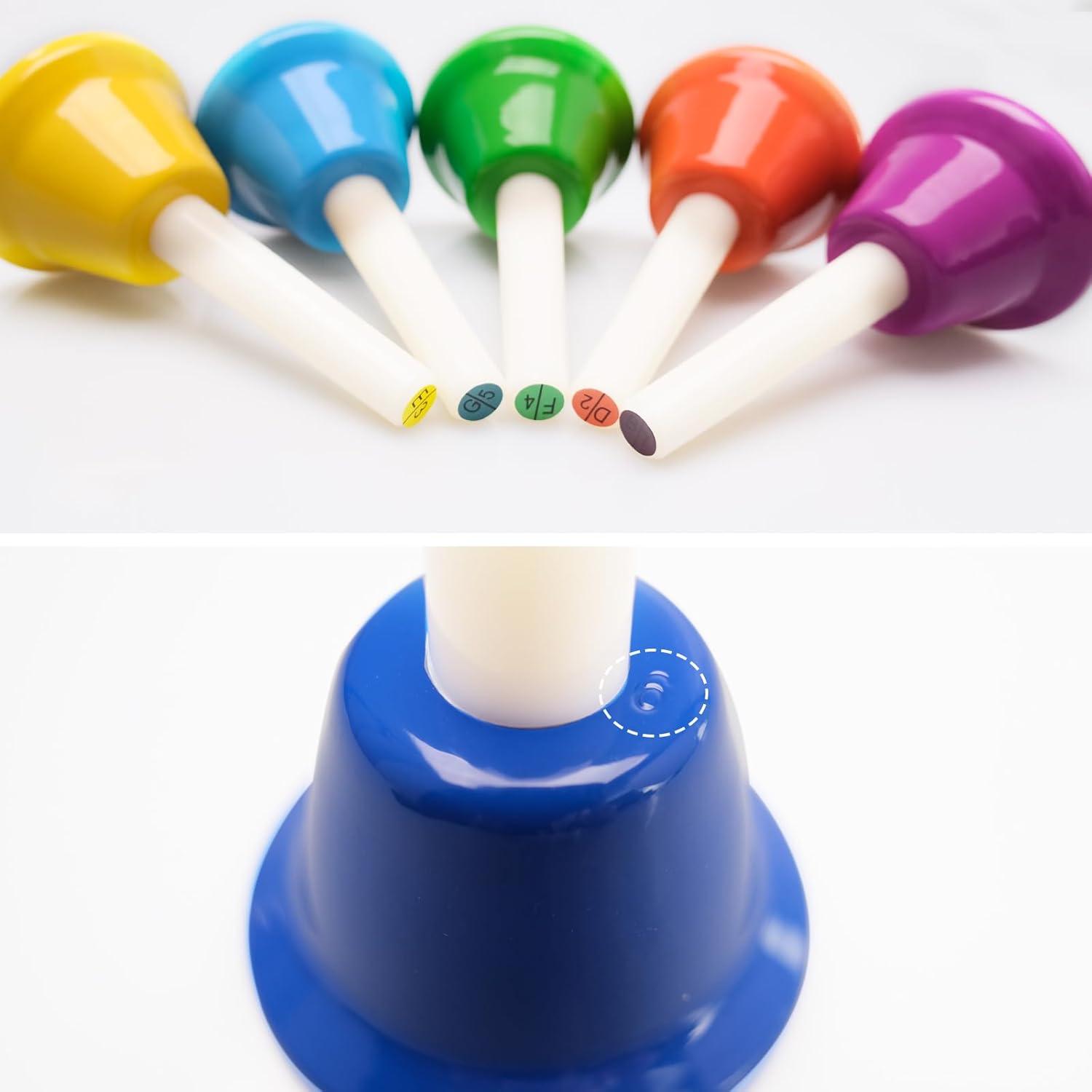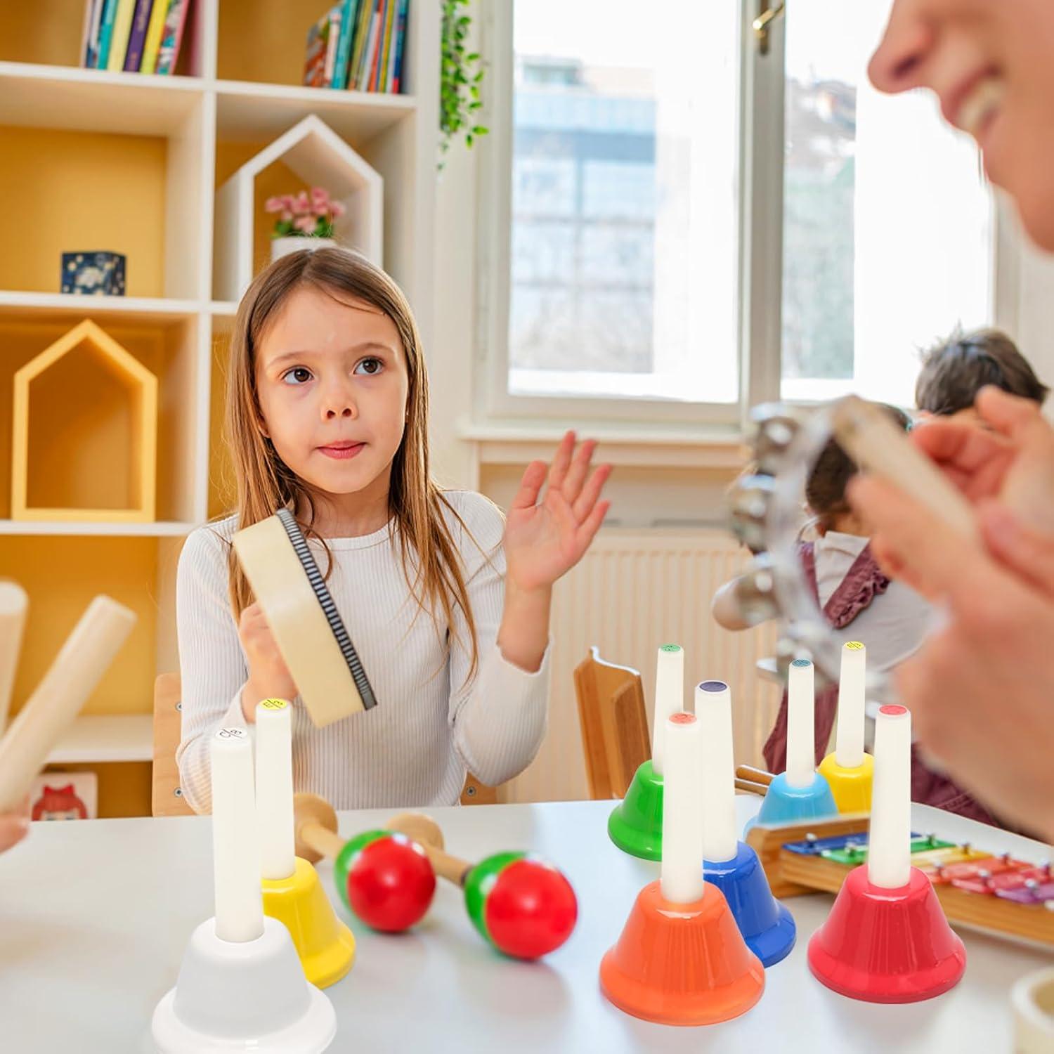 MUSICAL ENLIGHTENMENT – Children's handbells are an excellent tool for music education. They provide an easy and enjoyable way for children to explore the world of music, learning about scales, melodies, and rhythms. This can ignite their interest in music and foster musical awareness. Additionally, enhance their strong rhythmic skills, creativity, hand-eye coordination, sensory development, and foundational knowledge of music reading.
