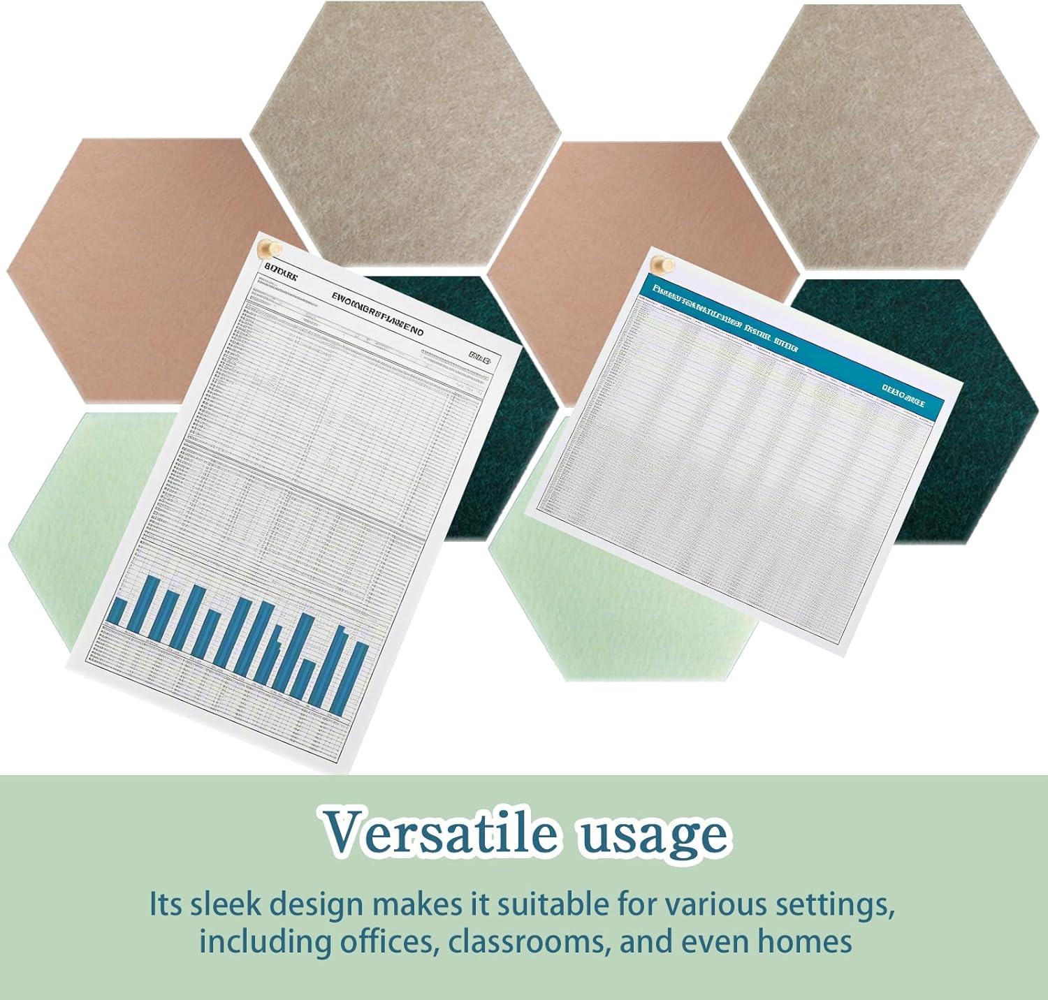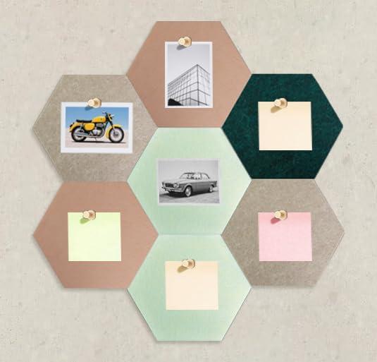 Creative Functionality: The hexagon cork board includes assorted felt tiles in colors such as light tan, light pink, light green, and dark green, helping turn your wall into a decorative or planning space while using the board for messages, notes, or reminders