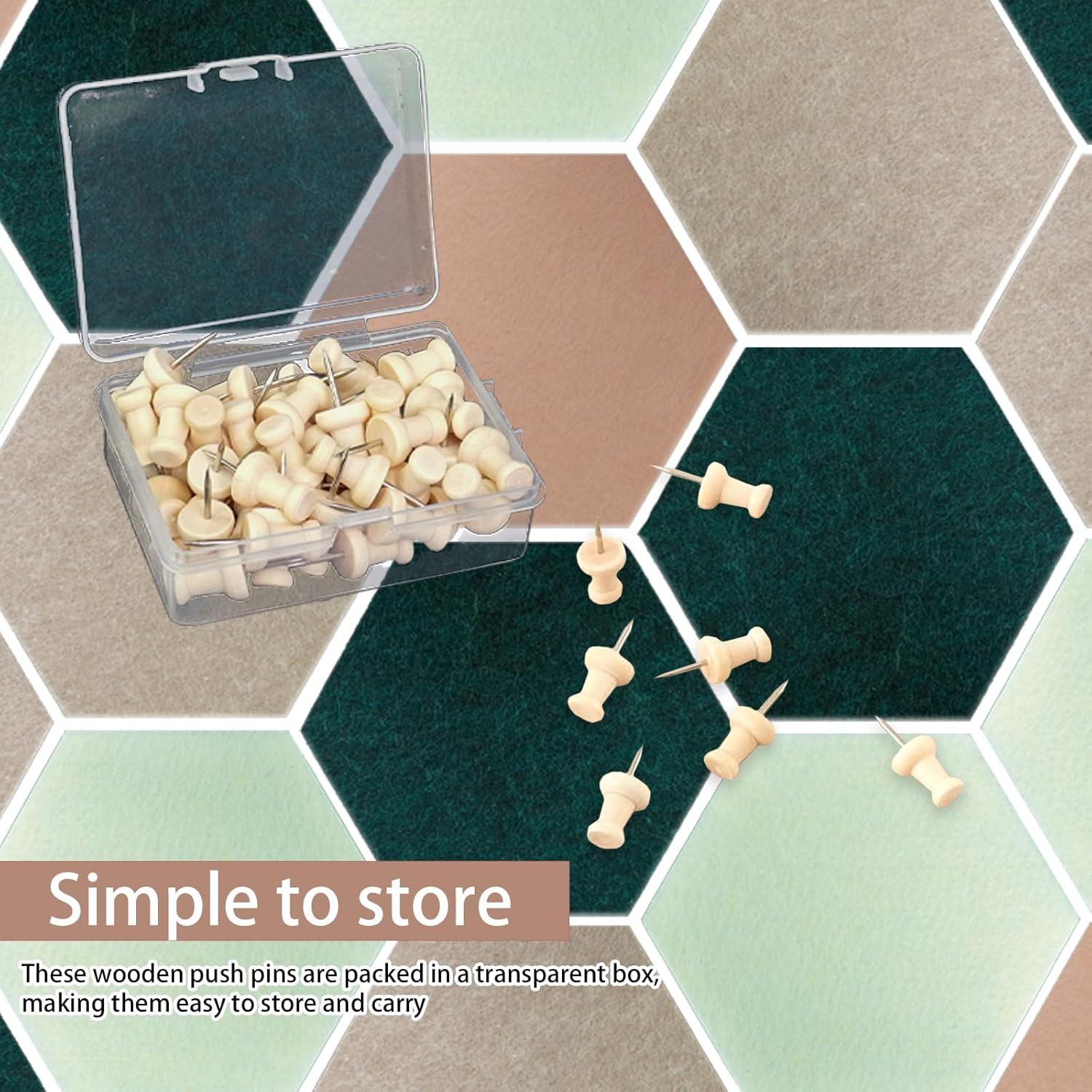 Sturdy Felt and Pin Combo: Crafted from dense felt material, each hexagon cork board supports secure pinning; paired with wooden push pins in a wood color, the board provides a charming and stable display for your daily needs