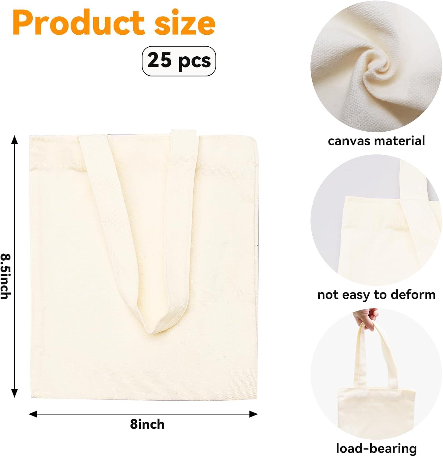 SET PACKAGE – You will receive 25 pieces of mini canvas tote bag, simple yet elegant, sufficient quantity, meeting your daily use and replacement demands, also available for sharing with others.