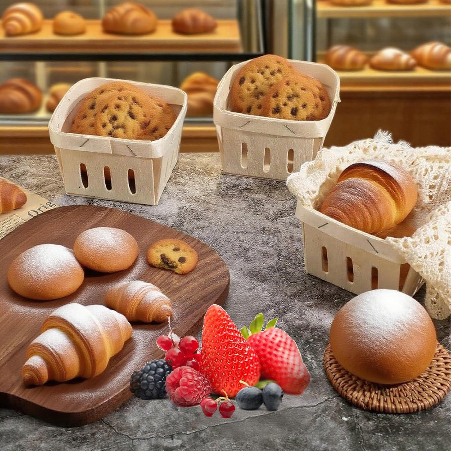 Compact and Elegant Size: The wooden berry basket holds approx. 1 pint with a 4 x 4 x 2.6 inch dimension, offering a compact and charming design for storing small items within each wooden berry basket