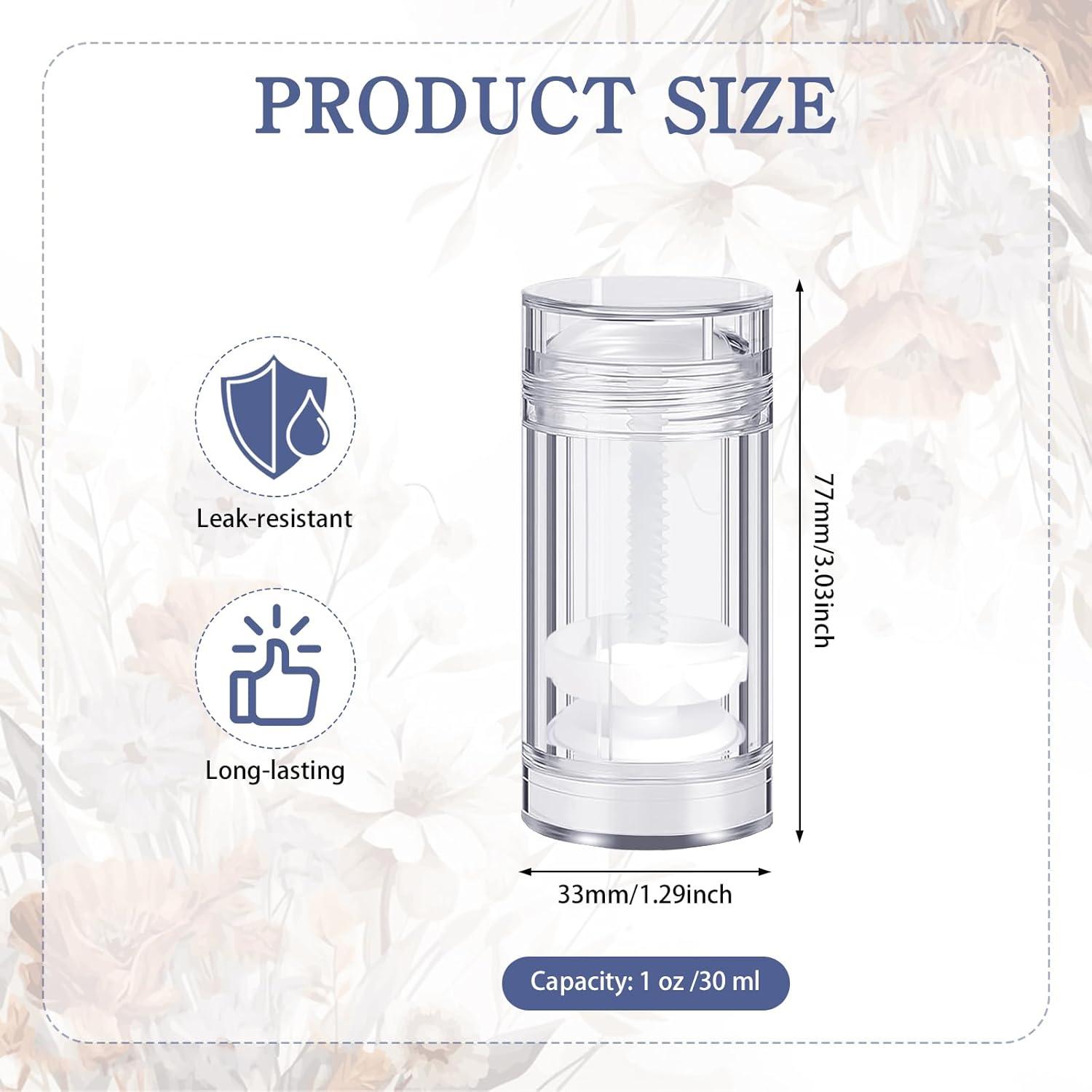 Ample Quantity: You will receive 36 pcs 30ml clear empty deodorant containers in this set; Each empty deodorant container is refillable and dispenses product by twisting the bottom wheel, ideal for DIY homemade deodorant and other products