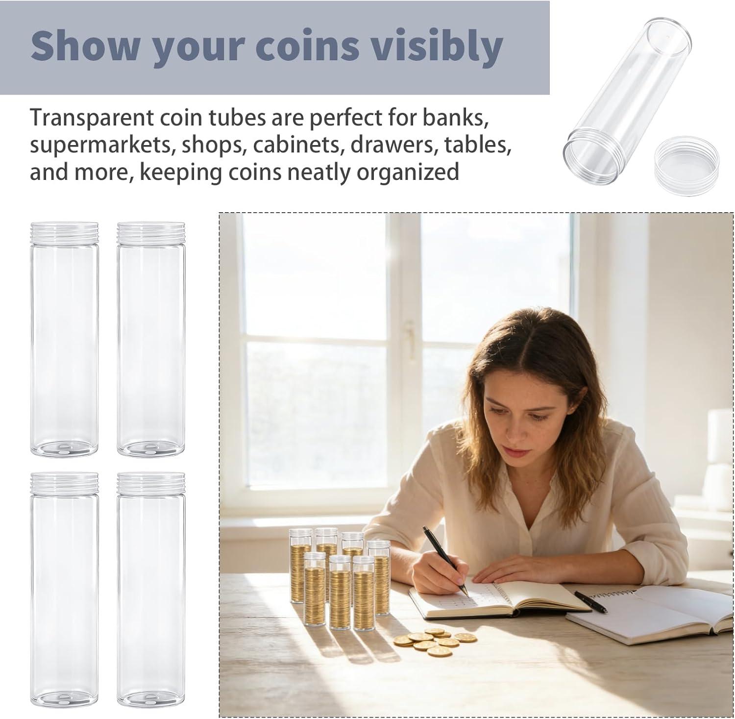 image42 Pcs Coin Storage Tube with Screw On Caps Long Term Coin Storage Tube Plastic Cent Holders for Collection Supplies Bank Rolls