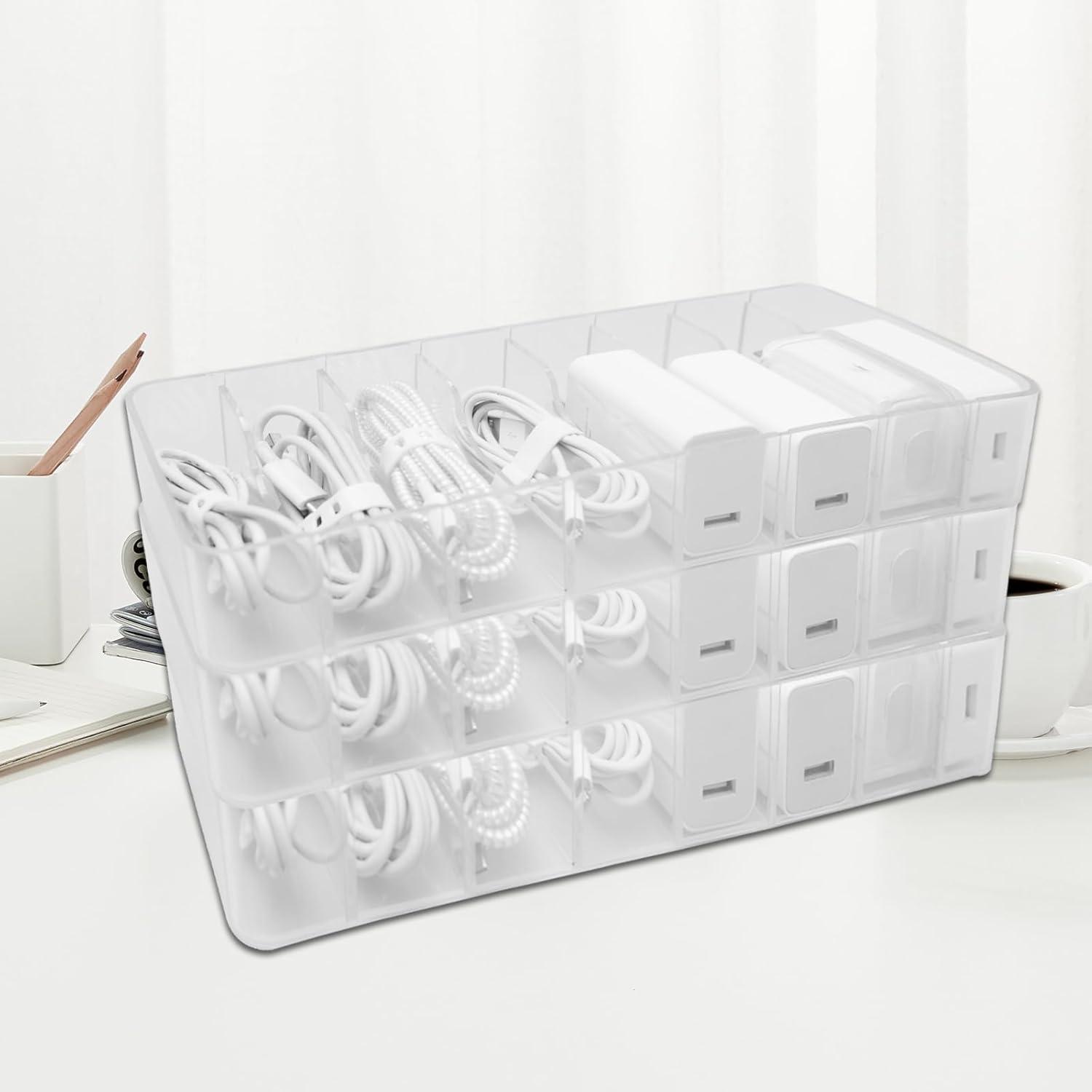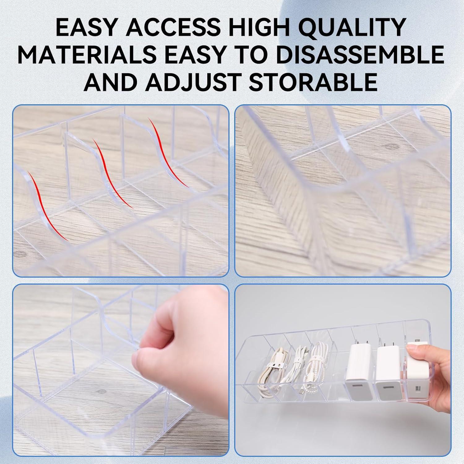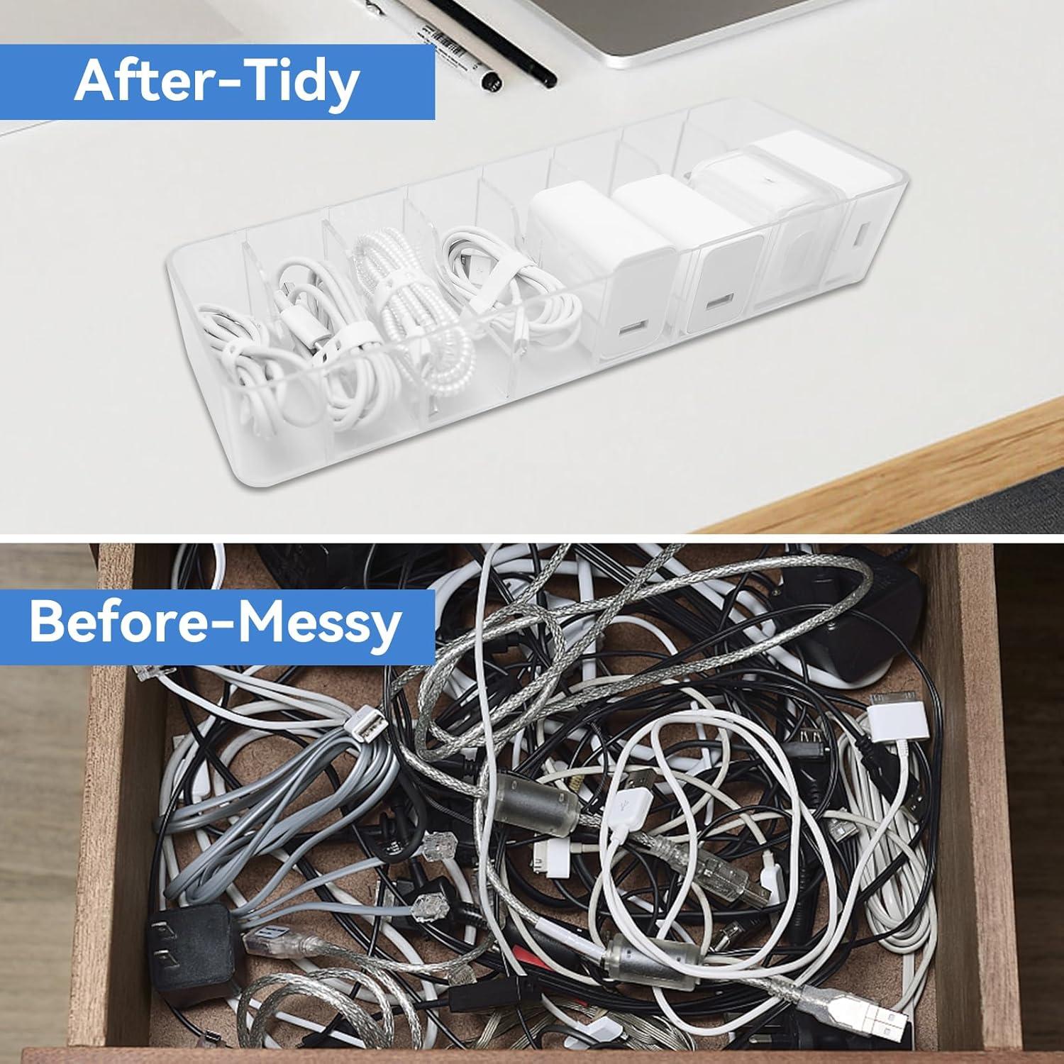 HIGH QUALITY – The charging cable organizer is made of quality plastic material, sturdy and reliable, durable and long lasting, transparent and waterproof, easy to clean and store all small desk accessories, save space and keep the desktop organized, neat and tidy.
