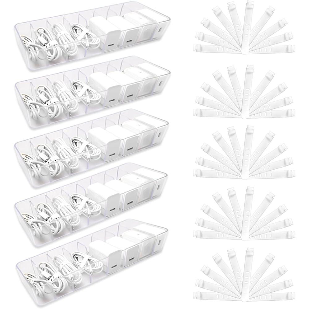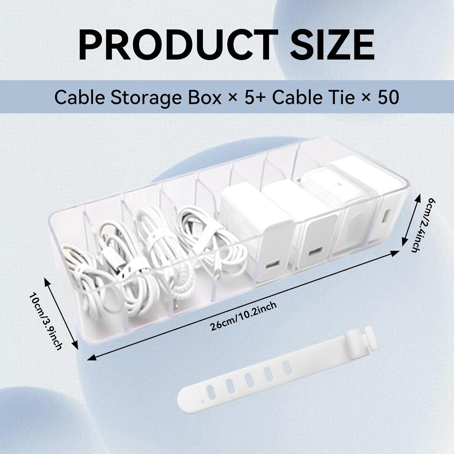 SET PACKAGE – You will receive 5 pcs clear charger organizer boxes and equipped with 50 wire ties, which is perfect for meeting your different needs. It’s perfect to store cables, phone charger, power cord and wires. Transparent design help you organize it well and clearly, and it’s no longer a messy tangle of wires and cables on your desk.