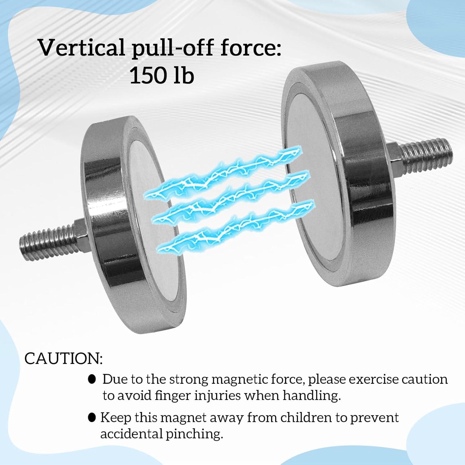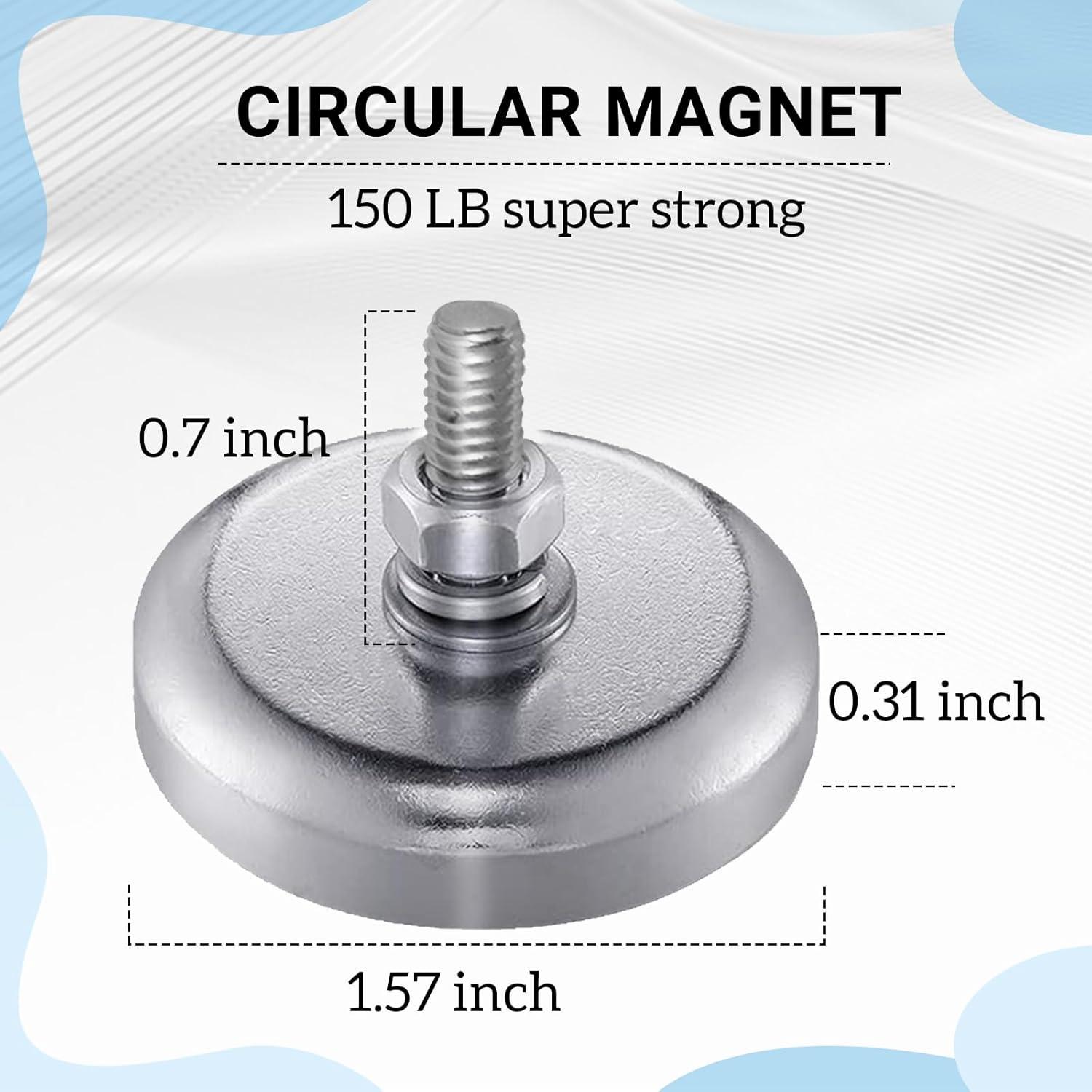 QUALITY MATERIAL – The magnet is made of neodymium magnet material, can create 150 lbs vertical magnetic pull force on a base of 0.31 inch thick steel round base, sturdy enough to bear the weight of most equipment.