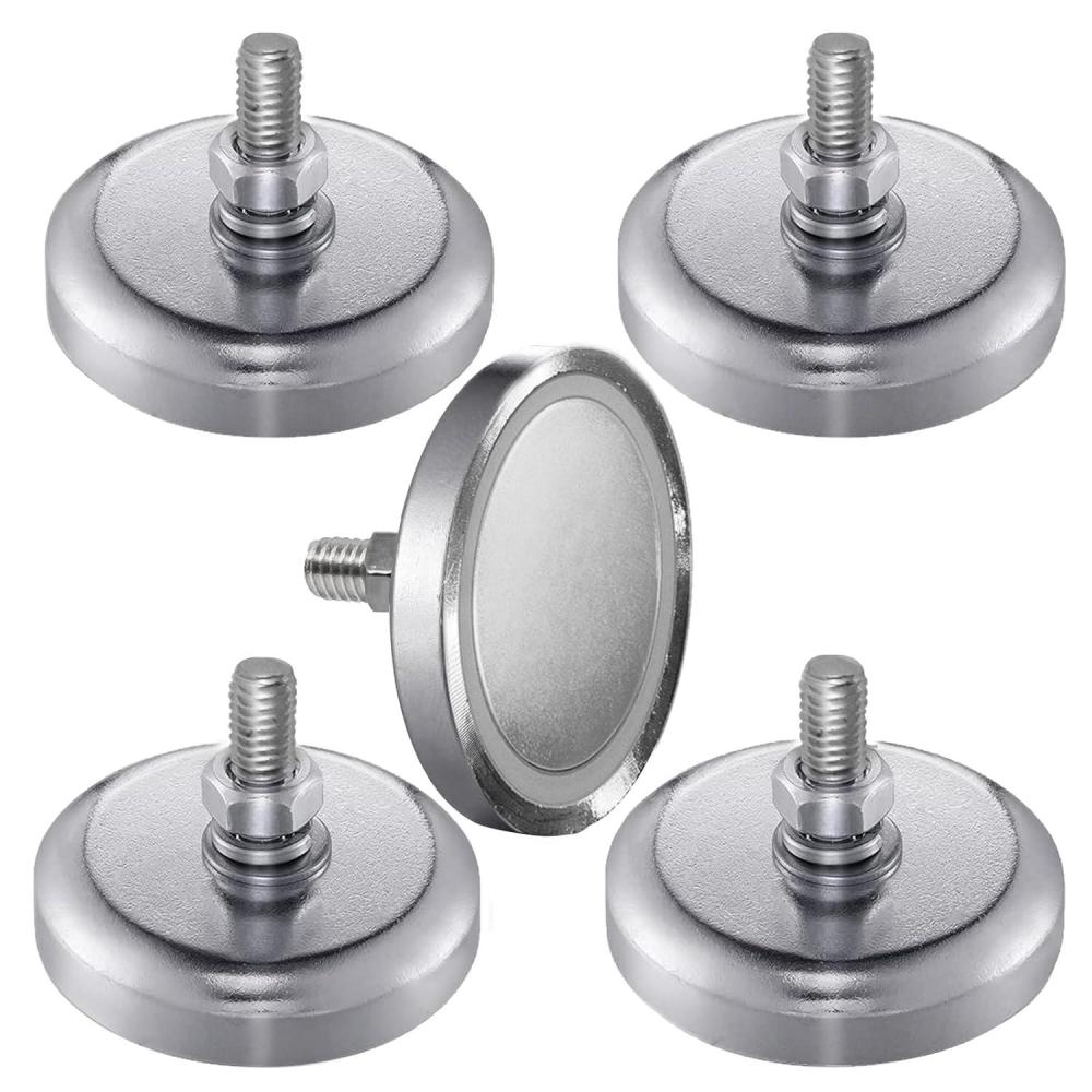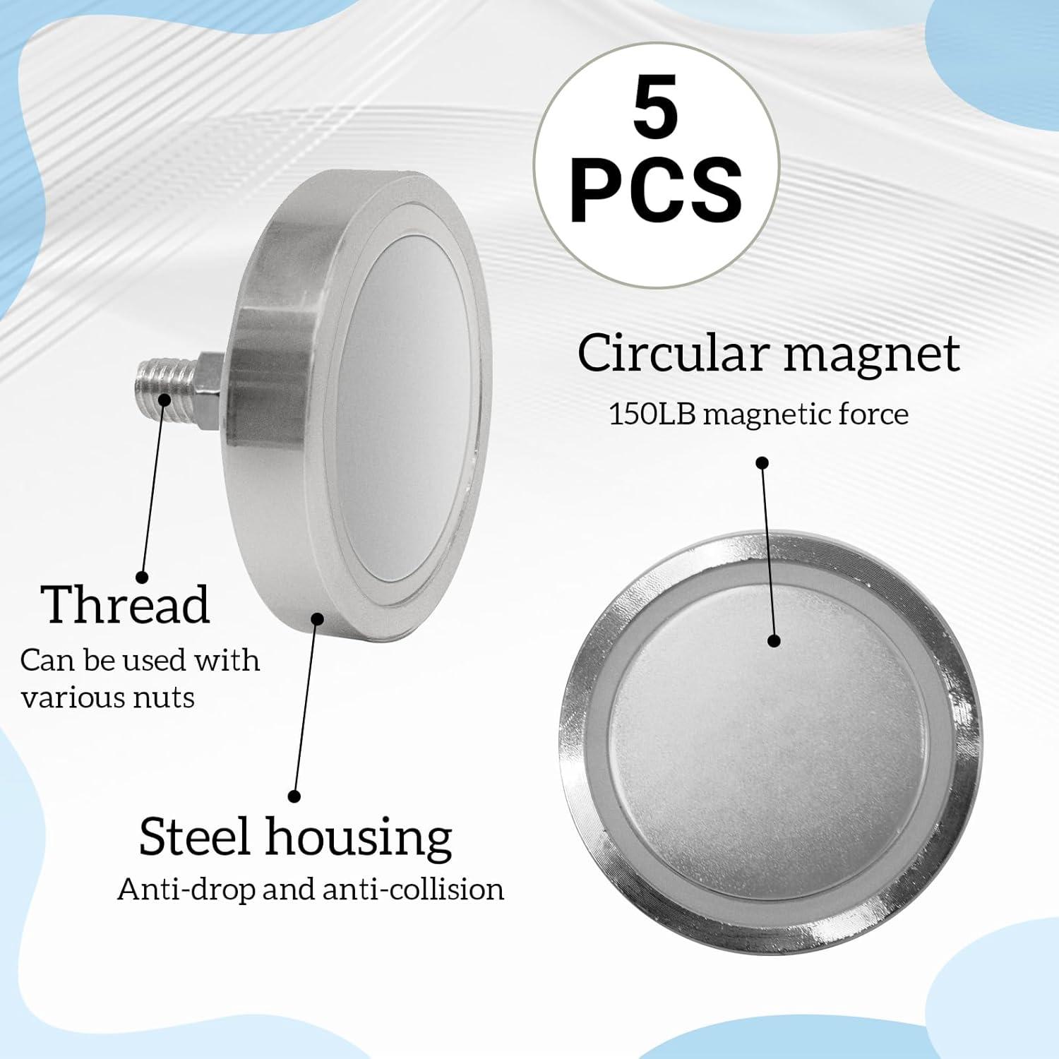 5 Pcs Neodymium Round Magnet with M6 Male Thread 150 Lb Circular Magnet with Washer Nut Round Base Mounting for Lighting, Camera Other Brackets