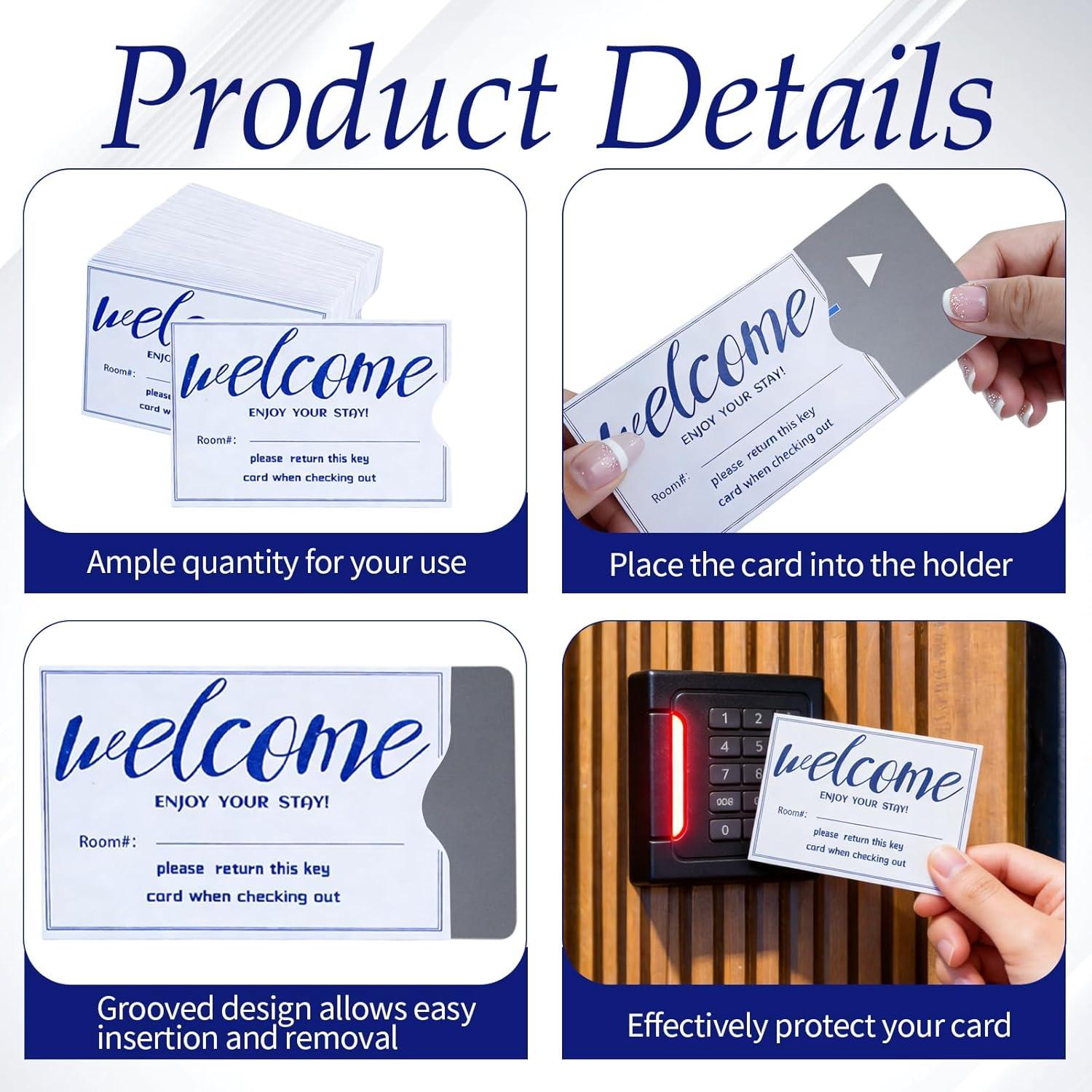 Practical Design: The key card holder sleeves adopt arc cut design allowing quick access to cards, bringing more convenience, and the delicately printed words enjoy your stay on the hotel key card envelopes sleeves show wishes for customers