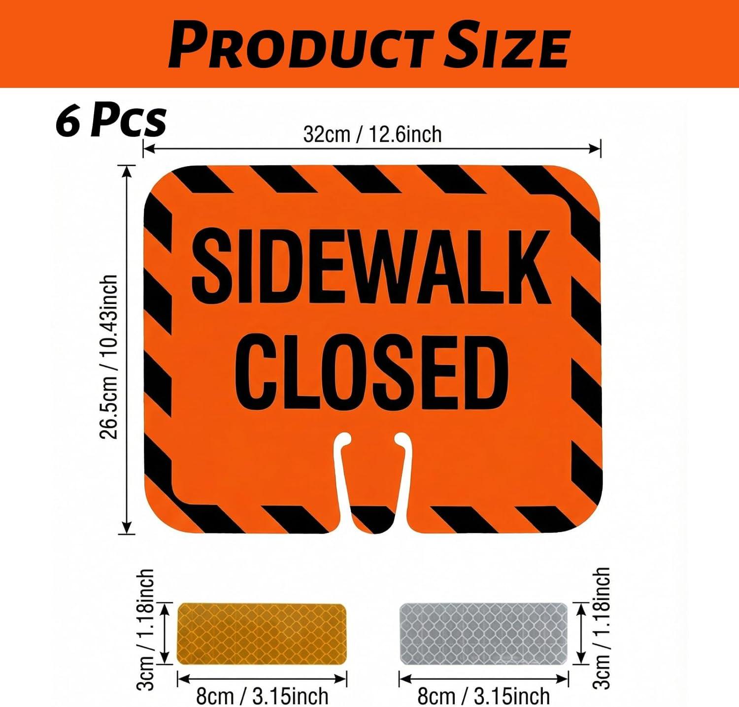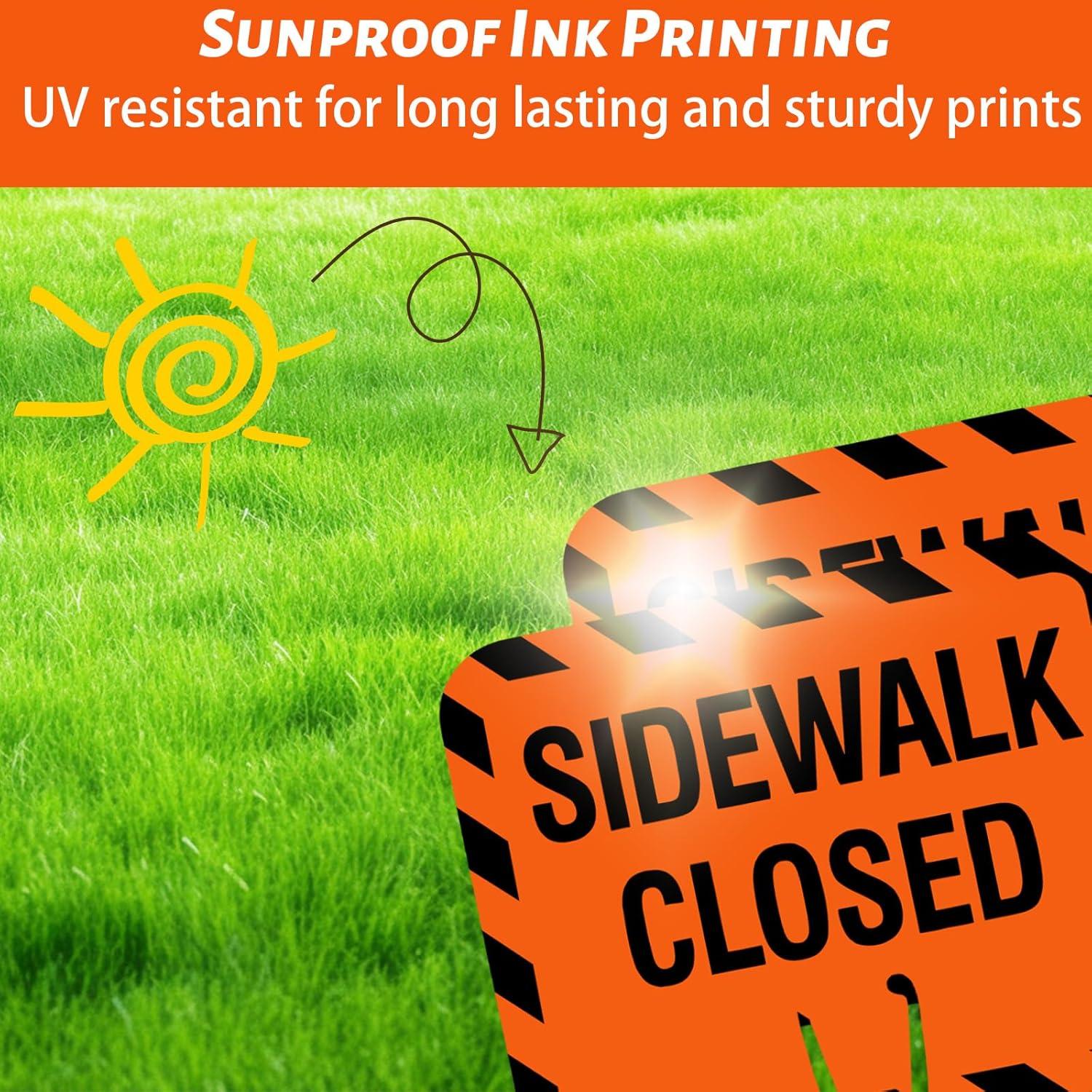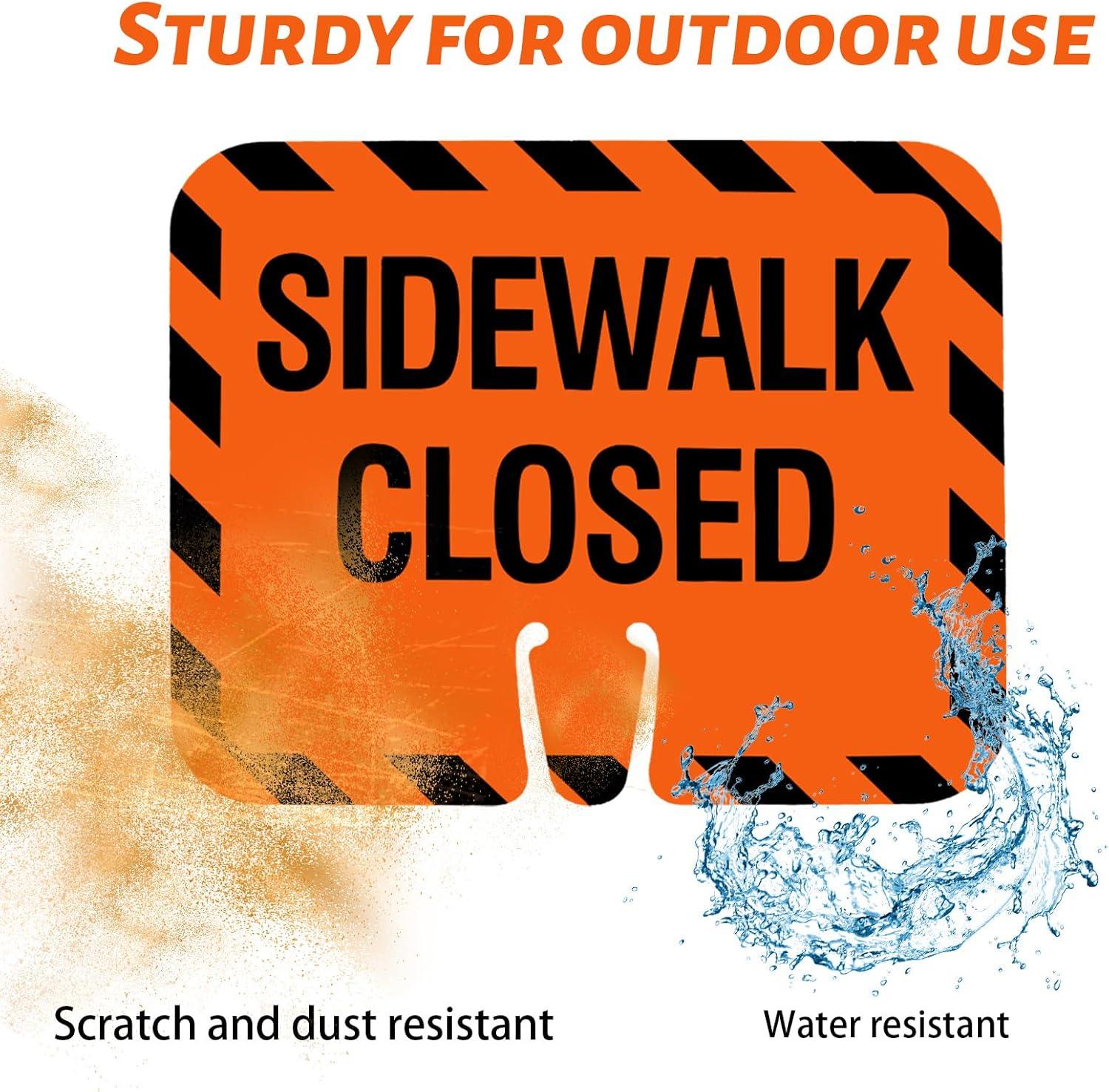 Practical Sign Dimensions: The plastic sidewalk closed sign measures about 10.43 x 12.6 inches with a thickness of 0.05 inches, making it large enough for clear visibility yet compact for easy storage and portability, giving the plastic sidewalk closed sign practical size advantages in maintaining order on the roads