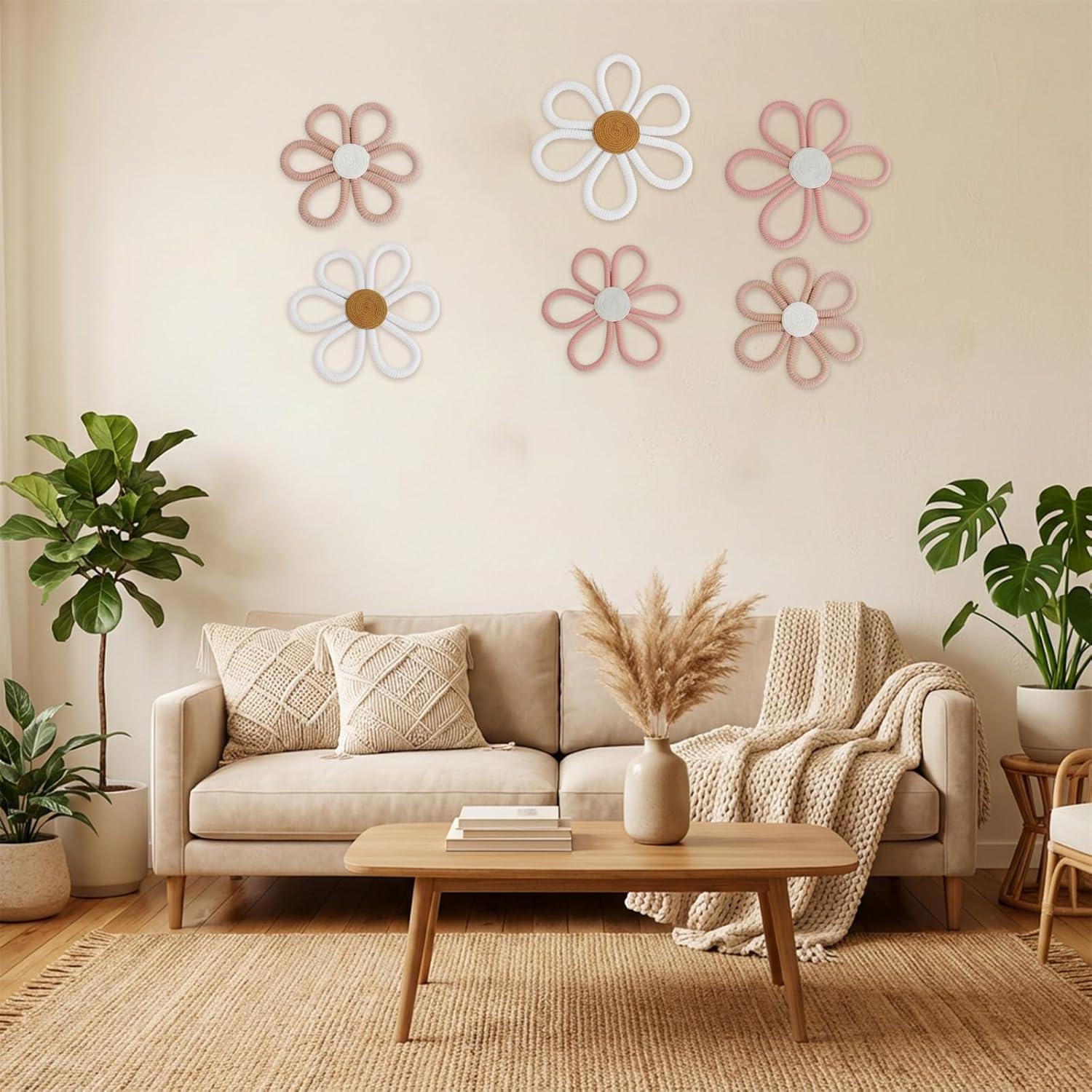 Boho Daisy Flower Wall Hanging Decor: the package includes 6 pieces of toddler wall decors featuring daisy flowers shapes, designed in 3 different sizes, brighten up your child's bedroom or nursery, suitable as both seasonal or holiday decorations, adding a boho flare to your home