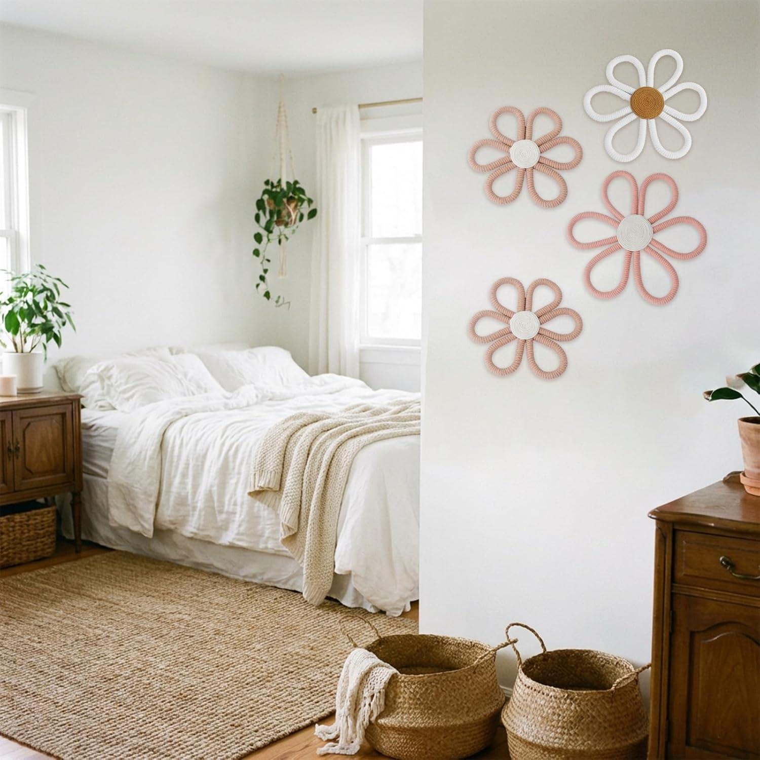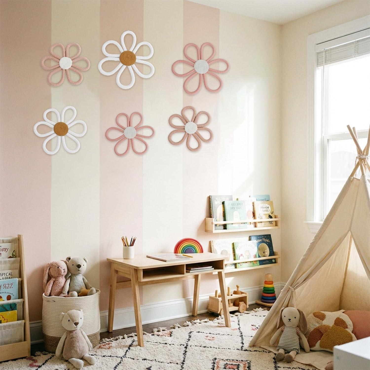 Handcrafted Daisy Detail: These boho nursery decors are handmade with yarn and cotton rope and created in fresh bold colors, built with steady structure for long term use and resistant to wear and fading, supporting boho nursery decor daisy visuals in a kids space or toddler room without reducing charm